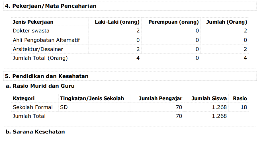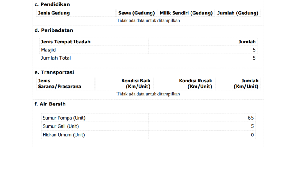 | Kendaraan Umum Ke Ibu Kota Kecamatan (Unit) | | 0 |